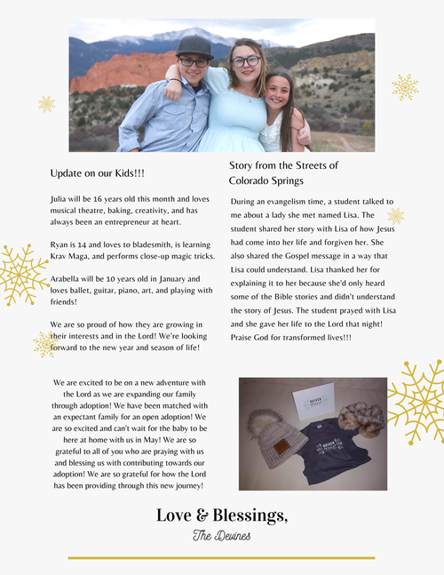 December Newsletter from the Devine Family who serve as missionaries in Colorado.